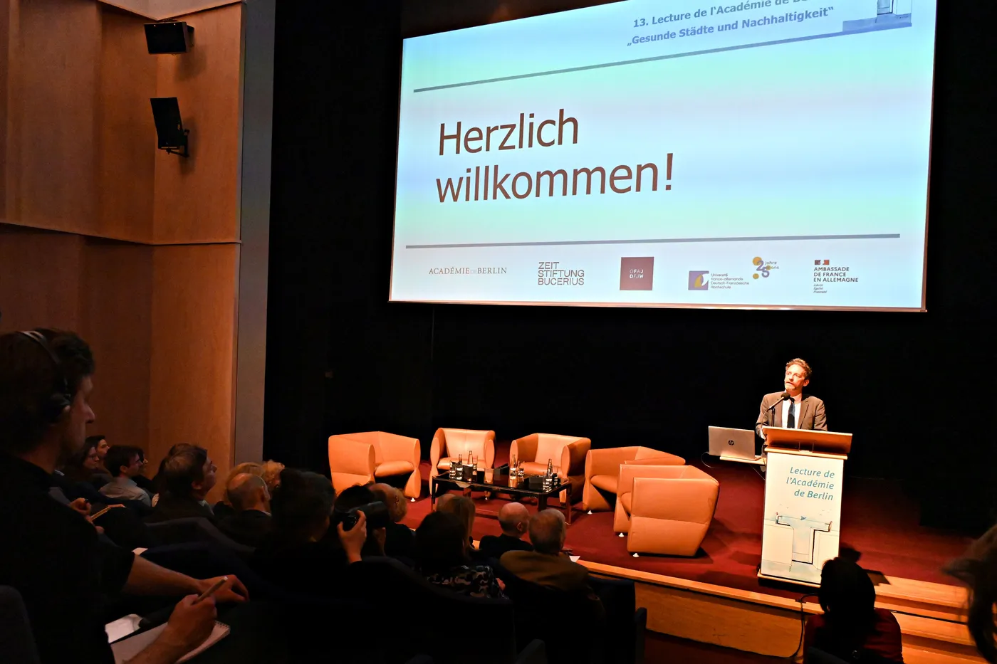 Um die UN-Nachhaltigkeitsziele zu erreichen, muss die Menschheit einen Schwerpunkt in den Städten setzen. Dort werden bald 70 Prozent der Weltbevölkerung leben. Wie gesunde Städte und Nachhaltigkeit zusammenhängen und gemeinsam gefördert werden können, war Thema der diesjährigen Lecture de l’Académie de Berlin. Rund 200 Gäste nahmen am 16.04.2024 in der Französischen Botschaft in Berlin teil.